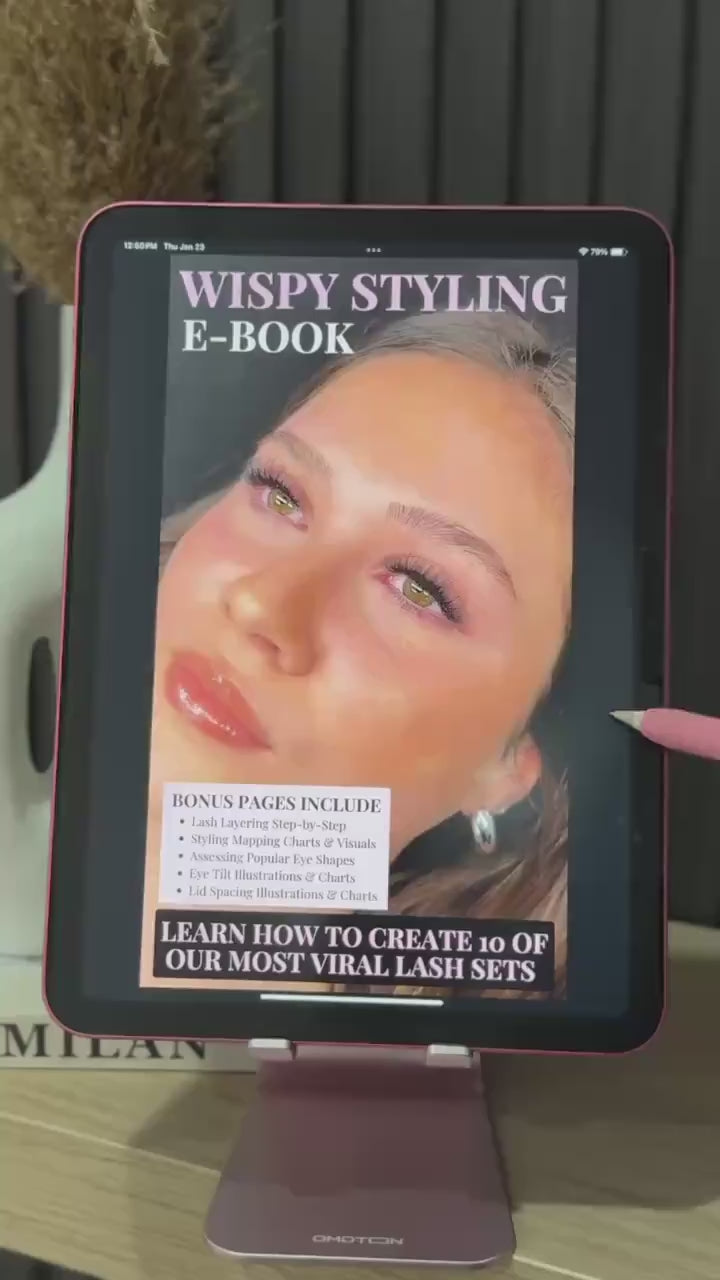 Our 57-page e-book features 10 of our most viral wispy lash sets with millions of views across our social media platforms.